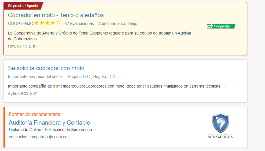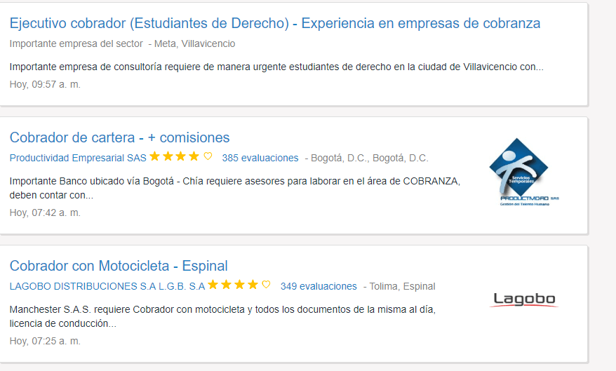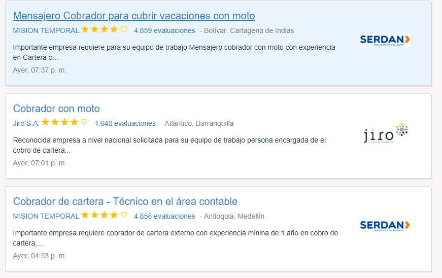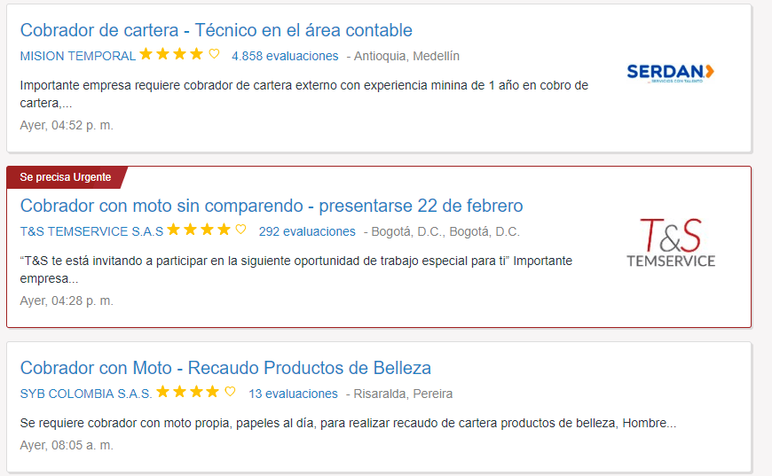 El empleo es para todas aquellas personas que tengan el perfil de cobrador motorizado.