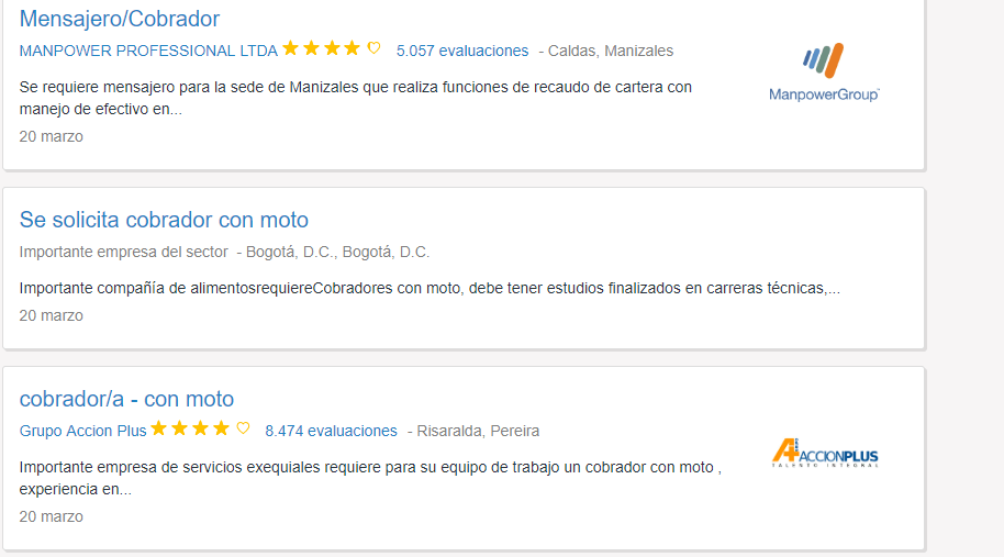 Varias empresas,solicitan de manera urgente para que conformen el Equipo De Trabajo Personal Para El Puesto de Cobrador Motorizado.